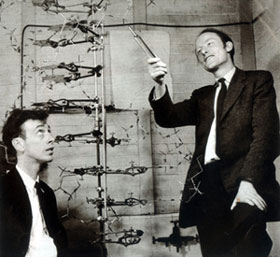 1951年~1953年在英國期間,沃森和克里克合作,應(yīng)用物理學(xué)、化學(xué)的新技術(shù)和生物學(xué)研究的新成果,用綜合的觀點(diǎn),把自己的創(chuàng)造性工作同前人的研究成就結(jié)合起來,提出了DNA的雙螺旋結(jié)構(gòu)學(xué)說,這個學(xué)說不但闡明了DNA的基本結(jié)構(gòu),并且為一個DNA分子如何復(fù)制成兩個結(jié)構(gòu)相同DNA分子以及DNA怎樣傳遞生物體的遺傳信息提供了合理的說明,成功地解決了DNA的三維結(jié)構(gòu)問題。