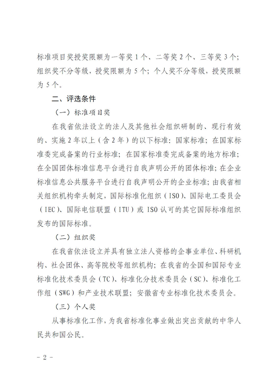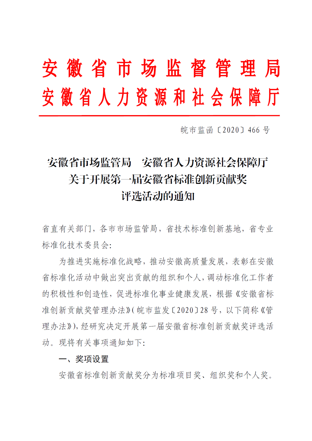 關(guān)于開展第一屆安徽省標(biāo)準(zhǔn)創(chuàng)新貢獻(xiàn)獎評選活動的通知