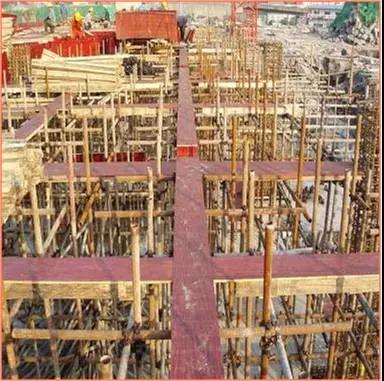 樓板模板:模板支撐體系經(jīng)過嚴(yán)格驗(yàn)算,并履行審批手續(xù),確保支撐體系的剛度、強(qiáng)度及穩(wěn)定性。嚴(yán)格控制模板起拱高度,跨度大于或等于4m的梁板按2/1000起拱??缍?.4m樓板按1.5cm起拱。