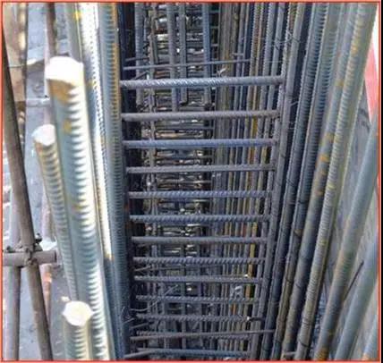 鋼筋加工:I級(jí)鋼筋末端需做180°彎鉤,彎曲直徑D取鋼筋直徑d的5倍,平直部分長度取鋼筋直徑d的5倍;箍筋彎鉤135°、平直部分長度取10 d。鋼筋定位鋼筋端頭應(yīng)切齊、磨去飛邊毛刺,端頭刷防銹漆。