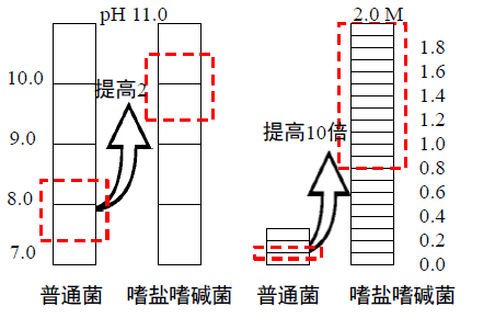 針對新型的嗜鹽嗜堿硫氧化系統(tǒng),我們自行篩選了嗜鹽嗜堿極端微生物,并敲除降低單質(zhì)硫產(chǎn)生的基因途徑,對其進(jìn)行遺傳基因改造。該微生物可在較高的pH值和鹽度范圍內(nèi)生長,相對普通菌群的耐受能力大大提高(圖1-4)。